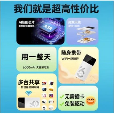 随身wifi可移动无线wi-fi6免插卡【无需预存】无限制便携式4G高速随行网络通用流量2024款5GHF 6000毫安大电池+续航翻倍全国通用