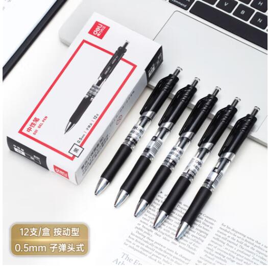 首页 > 办公用品 > 商务用笔 > 得力S01中性笔签字笔 0.5mm子弹头经典办公按动笔水笔 黑色 12支/盒
