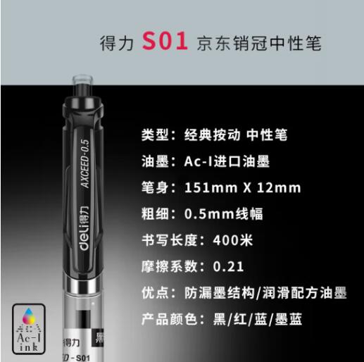 商品名称:得力S01中性笔签字笔