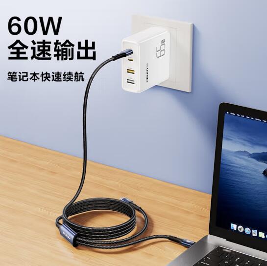 双Type-C数据线二合一PD60W充电线一拖二车载适用苹果iPhone16pro/15/14手机华为70小米笔记本ipad